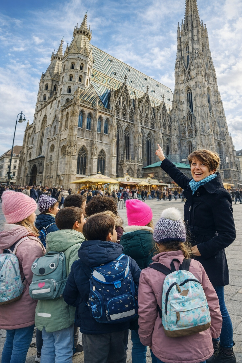 Der Stephansdom ist neben dem Riesenrad das Wahrzeichen Wiens. Am Stephansdom lernen die SchülerInnen nicht nur die Architektur dieses beeindruckenden Bauwerks kennen, sondern auch die historische Bedeutung des Doms für Wien und seine Entwicklung über die Jahrhunderte.